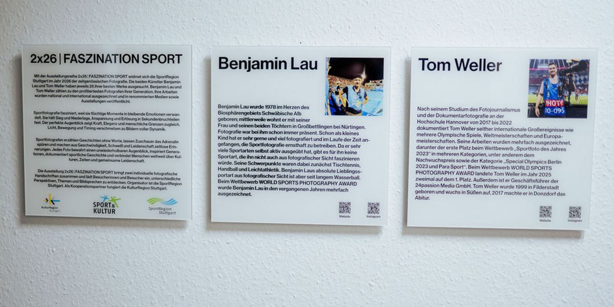 Die Ausstellung 2x26 | FASZINATION SPORT bringt zwei individuelle fotografische Handschriften zusammen und lädt Besucherinnen und Besucher ein, unterschiedliche Perspektiven, Themen und Bildsprachen zu entdecken. In Filderstadt wird die Ausstellung bis zum 27. Februar 2026 zu sehen sein. Danach wandert sie in den kommenden Monaten durch die Region Stuttgart. Als Kooperationspartner fungiert die KulturRegion Stuttgart.