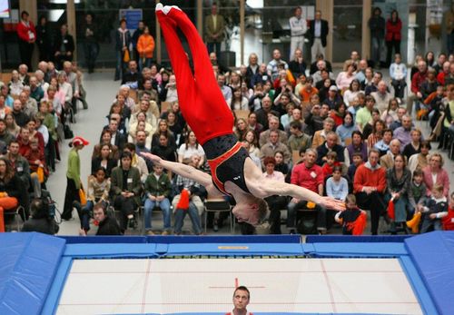 Das Trampolinturnen oder -springen wurde 1934 durch den Amerikaner Georg Nissen erfunden, der Segeltuch mit einigen Federn und einem Metallrahmen verband. Das Wort kommt wohl aus dem Italienischen („trampolino“ = Sprungbrett), und der erste reguläre Wettkampf fand 1947 in Dallas statt. 1955 kam die Sportart nach Europa und wurde 1959 schließlich vom Turn-Weltverband Fédération Internationale de Gymnastique (ITF) offiziell anerkannt. Das Trampolinturnen auf dem Großtrampolin wird in drei Kategorien ausgetragen – im Einzel, als Synchronwettbewerb oder mit der Mannschaft. Dabei werden die einzelnen Resultate der vier Teammitglieder addiert.