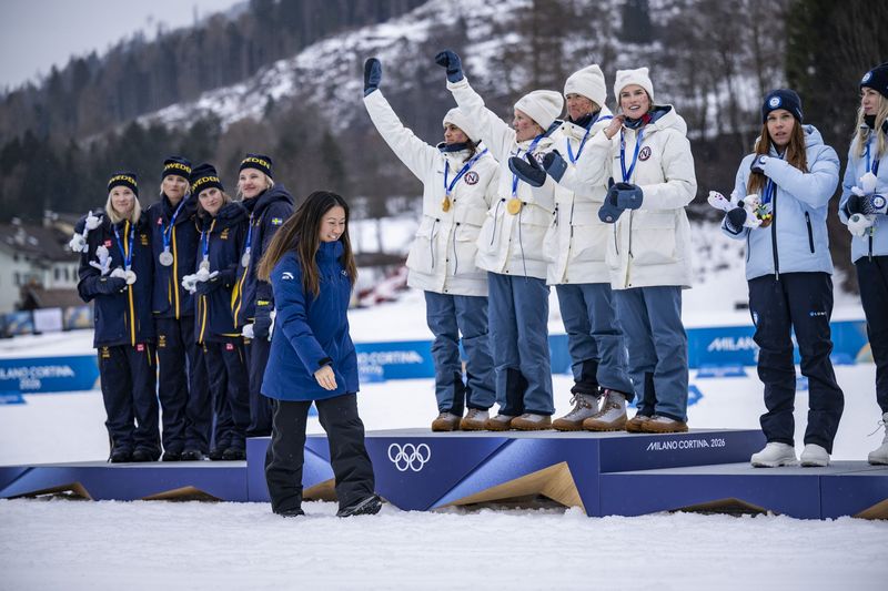 „Das Schöne an Großereignisse ist, dass es immer wieder Überraschungen gibt. Es gibt unerwartete Außenseitersiege und unerklärliche Leistungseinbrüche von Akteuren, die gerade am entscheidenden Tag ihre Potenzial dann eben doch nicht abrufen können. Das zeigt: Man hat es mit mit Menschen und nicht mit Maschinen zu tun. Zu jedem Event gehört eine Siegerehrung dazu. So auch beim Langlaufevent der Frauen. Für mich als Sportfotgraf ist das ein Pflichttermin, jubelnde Bilder der Siegerinnen und Sieger runden das eigene Portfolio ab. Von daher gehe ich an diesen Teil recht emotionslos heran. Ich mache einfach meine Arbeit und drücke auf den Auslöser. Große Augen bekommen habe ich jedoch, als ich ein bekanntes Gesicht entdeckt habe – keine Geringere als Kim Bui hat an der Zeremonie mitgewirkt. Kimi kenne ich schon lange, immerhin war sie mehr als 20 Jahre lang Mitglied der deutschen Turn-Nationalmannschaft der Frauen und hat an diversen Olympischen Sommerspielen teilgenommen. Dass sie jetzt auch bei der Winter-Variante in Italien dabei ist, liegt daran, dass sie seit dem Jahr 2024 der IOC-Athletenkommission angehört. Und in dieser Funktion darf sie in diesen Tagen bei der Siegerehrung dabei sein.“