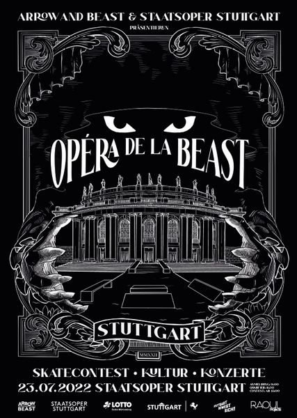 Mit der Stuttgarter Oper verbindet man normalerweise musikalische Inszenierungen, glamouröse Bühnenbilder und grazile Ballerinas. Ein krasser Kontrast zu den Skatecrews am benachbarten Stuttgarter Landtag, die eher durch aufwendige Trickkombos und einen besonderen Lifestyle auffallen. Opéra de la Beast bietet beiden Communitys eine gemeinsame Bühne. Am 23. Juli 2022 werden die Freitreppen und der Vorplatz der Staatsoper Stuttgart für einen Tag in eine skatebare Fläche verwandelt. Skater aus ganz Deutschland kommen an jenem Samstag zusammen, fliegen aus dem Foyer der Staatsoper und fighten um das Preisgeld, während local Music Acts, DJs, die Ensemble und eine Überraschung für den Entertainment-Faktor sorgen. Es wird ein kompletter Samstag im Rahmen der Bretter werden, die die Welt bedeuten, ein urbaner Melting Pot für Kunst und Kultur mitten in Stuttgart. Der Eintritt ist frei, Getränke und Snacks gibt es vor Ort. Ab 11.30 Uhr startet die Qualifikation, gegen 18 Uhr wird dann das Finale starten.