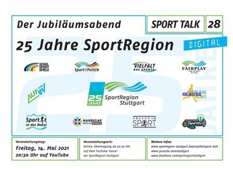 Die SportRegion Stuttgart wurde am 14. Mai 1996 gegründet, exakt 25 Jahre später fand am 14. Mai 2021 die 28. Auflage der Diskussionsreihe SPORT TALK statt. Moderator Daniel Räuchle hatte dabei insgesamt zwölf Personen zu Gast, mit denen er in drei Talk-Runden über die Geschichte des Vereins sprach. Das Video wurde im RemstalStudio33 in der Schorndorfer Barbara-Künkelin-Halle produziert. Erstmals überhaupt wurde ein SPORT TALK in rein digitaler Form durchgeführt. Ein rund 8-minütiger Nachbericht ist auf dem YouTube-Kanal der SportRegion Stuttgart zu finden. Dort kann man sich auch noch die Talk-Runde in kompletter Länge ansehen.