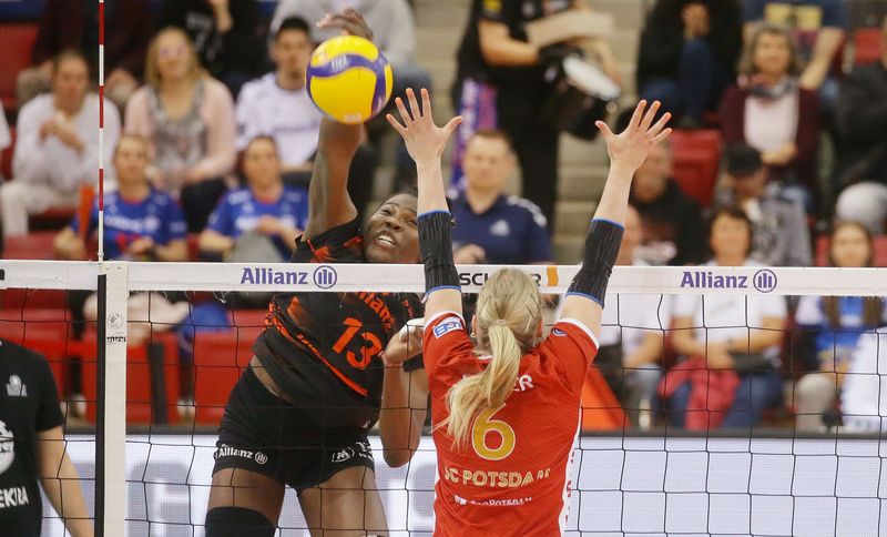 Nach zwei Duellen steht die Finalserie in der 1. Volleyball-Bundesliga der Frauen unentschieden. Allianz MTV Stuttgart hatte die Serie am Dienstag mit einem 3:1-Heimsieg gegen den SC Potsdam eröffnet. Das umkämpfte zweite Spiel am Samstag in Potsdam ging jedoch mit 3:1 an die Gastgeberinnen. Weil die Volleyball-Meisterinnen im Best-of-Five-Modus ermittelt werden und somit drei Siege nötig sind, um den Titel klarzumachen, steht nun bereits fest: Im dritten Spiel am Mittwoch (10. März 2023) wird die Meisterschaft noch nicht entschieden. Enorm wichtig ist das Duell, das ab 20.15 Uhr in der SCHARRena in Stuttgart-Bad Cannstatt ausgetragen wird, freilich dennoch. Denn das Team, das am Mittwochabend in der SCHARRena gewinnt, kann sich dann bereits im vierten Spiel der Finalserie zum Titelgewinn schmettern. Dieses findet am Samstag (13. Mai 2023) statt, gespielt wird dann erneut in Potsdam. Gelingen weder Allianz MTV noch dem SC Potsdam zwei Siege aus den bevorstehenden zwei Duellen, fällt die Meisterschaftsentscheidung in einem fünften Spiel, bei dem die Stuttgarterinnen dann wieder Heimrecht hätten. Der Termin für dieses möglicherweise entscheidende fünfte Aufeinandertreffen steht schon: Es würde am Montag (15. Mai 2023) ab 18 Uhr in der SCHARRena stattfinden. Egal, ob es noch zwei oder drei Begegnungen bis zur Titelentscheidung braucht: Alle noch ausstehenden Partien der Finalserie werden live vom TV-Sender Sport1 übertragen.