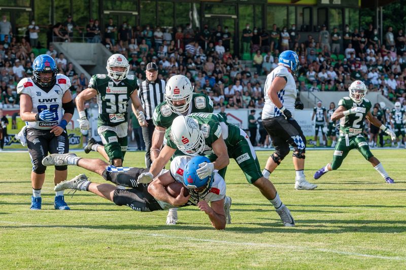 Im vergangenen Jahr gelang den Schwäbisch Hall Unicorns ihr erster internationaler Titelgewinn. In Innsbruck gewannen die Haller Einhörner den CEFL Bowl XV – CEFL steht dabei für Central European Football League, sozusagen ein Europapokal-Wettbewerb im American Football. Nun sind die Unicorns auf bestem Weg, den Titel in der CEFL erneut zu holen. Dank deutlicher Siege (58:7 gegen die Örebro Black Knights und 35:21 gegen Flash de La Courneuve) haben sich die Haller ins Endspiel des europäischen Wettbewerbs vorgekämpft. Und im CEFL Bowl XVI haben sie nun sogar Heimrecht: Das Finale findet am Samstag (25. Juni 2022) im OPTIMA-Sportpark Schwäbisch Hall statt, Spielbeginn ist dort um 17 Uhr. Doch Vorsicht: Der Endspielgegner der Unicorns kam im bisherigen Turnier mit Mannschaften aus dem deutschsprachigen Raum bestens zurecht. Die Parma Panthers, Italienischer Meister des Vorjahres, schalteten auf dem Weg ins Finale die Danube Dragons aus Wien und die Calanda Broncos aus dem schweizerischen Kanton Graubünden aus.