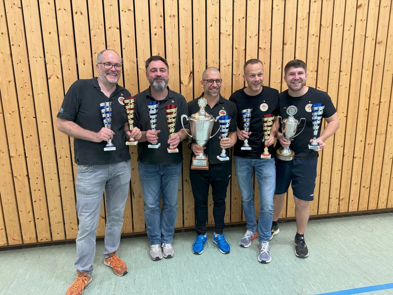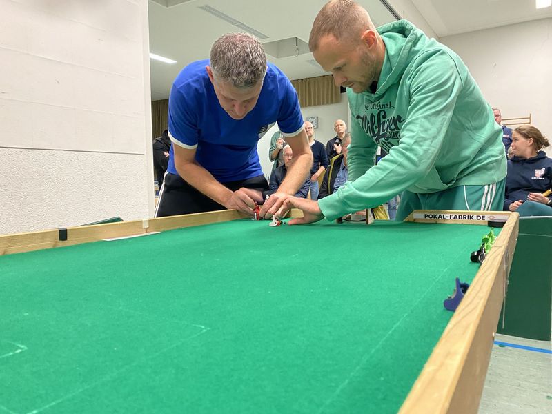 Die Tipp-Kick-Akteure des TKC 71 Hirschlanden haben den Heimvorteil genutzt und vor heimischer Kulisse das Double geholt. Zunächst ging es in der Karl-Koch-Halle am Samstag (18. November 2023) im Play-Off-Halbfinale der Bundesliga gegen Preußen Waltrop, hier setzte Hirschlanden deutlich mit 25:9 Punkten durch und stand damit im Finale der Tipp-Kick-Bundesliga. In der Besetzung Benjamin Buza, Max Daub, Harald Füßinger und Florian Stähle gewann der TKC auch das Finale gegen den TKC Gallus Frankfurt deutlich mit 20:12 Punkten und holte sich so den Titel.