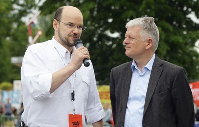 Manchmal laufen bei Events auch Prominente mit. Ich kann mich zum Beispiel noch gut daran erinnern, als beim Bietigheimer Silvesterlauf einmal ein Regierungsmitglied am Start war. Natürlich gingen dann auch dessen Personenschützer mit auf die Strecke. Die taten mir hinterher ganz schön leid, denn der Chef war ziemlich flink unterwegs. Manchmal habe ich auch Verstärkung an der Seite. Den Silversterlauf moderiere ich gemeinsam mit Michael Joos und (wie lange Jahre auch den Stuttgart-Lauf) mit Achim Seiter, der ja eigentlich vom Triathlon kommt. Unsere Zusammenarbeit hat sich irgendwie so ergeben. Wir harmonieren und ergänzen uns gut. Man weiß im Laufe der Zeit, wie der andere tickt. Wenn es passt, kann man sich die Bälle gut zuspielen.