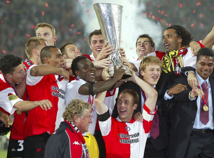 Feyenoord Rotterdam zu Gast in Stuttgart Zwei Jahre später kreuzten sich die Wege von Feyenoord Rotterdam und VfB Stuttgart erneut (und zwar zum bislang letzten Mal). Auch damals, in der dritten Runde des UEFA-Pokals 2000/2001, mit dem besseren Ende für die Stuttgarter: Nach einem 2:2 im Hinspiel zog der VfB durch ein 2:1 vor heimischer Kulisse ins Achtelfinale ein, wo dann gegen Celta Vigo Schluss war. Die aktuelle Saison in der Europa League dürfte sich für manchen VfB-Fan also ein bisschen wie das Blättern durch die Europapokal-Geschichte des eigenen Vereins anfühlen. Die Wiederauflage des Spiels gegen Celta Vigo fand ja schon am 25. September 2025 statt, der VfB gewann 2:1. An diesem Donnerstag (6. November 2025) folgt also das Wiedersehen mit Feyenoord Rotterdam, das aktuell von Robin van Persie trainiert wird und in der niederländischen Eredivisie momentan an der Tabellenspitze steht. Ob man dort noch eine Rechnung mit dem VfB offen hat? Der Groll über das Ausscheiden in der Spielzeit 2000/2001 dürfte sich jedenfalls in Grenzen halten. Schließlich holte Feyenoord, wie unser Titelbild es zeigt, in der darauffolgenden Saison den Titel im UEFA-Pokal und ermöglichte seinen Anhängern somit einen magischen Europapokal-Moment, den die VfB-Fans möglicherweise an diesem Donnerstag erleben werden.